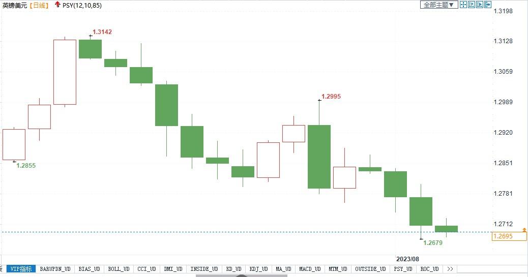 北京时间8月3日15:21,英镑兑美元报1.2696/97