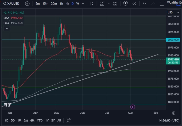 汇通财经APP讯——黄金市场在周四存在大量噪音和不确定性,交易者热切等待周五发布的美国7月非农就业报告。目前,黄金处于盘整阶段,徘徊在50日均线上方。市场参与者密切关注任何可能导致方向性走势的动能迹象。