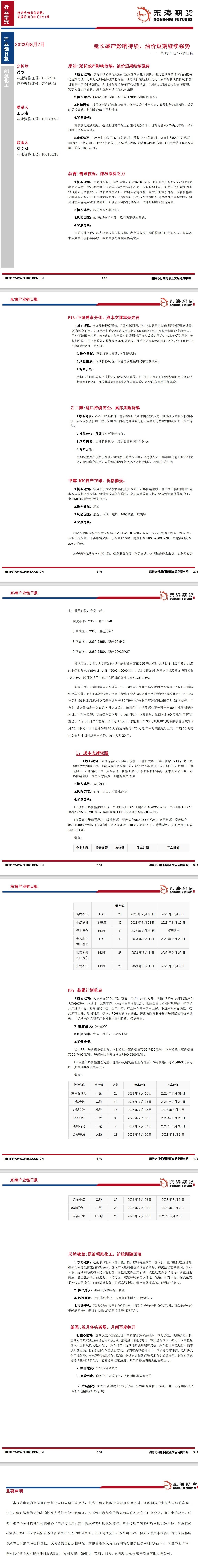 标题:【东海期货8月7日产业链日报】能化篇:延长减产影响持续,油价短期继续强势