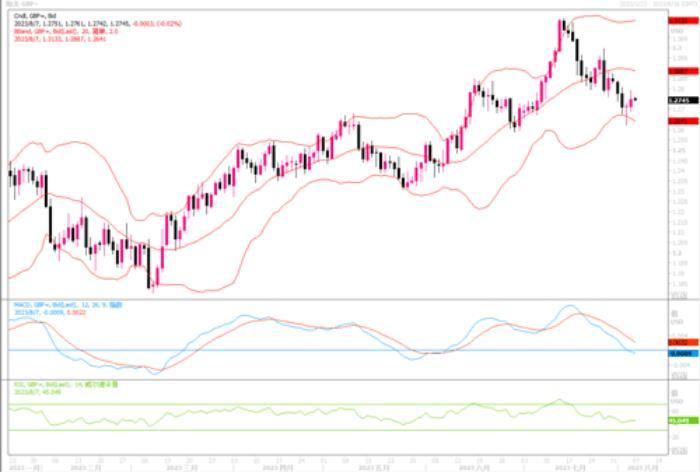上周五(8月4日)英镑/美元升0.31%,报收于1.2750,略高于五周低点。这易方面是因为美国非农就业职位数据增加低于预期,美元有所回落的间接抬捧作用。另一方面,交易员继续消化上周四英国央行加息25个基点的消息。法国巴黎银行分析师在一份报告中表示,“央行的重点从限制性利率水平转向持续时间表明,英国央行货币政策委员会的指引是紧缩周期即将结束。”法国巴黎银行表示,这可能在一定程度上“反映出英镑已经‘做出了很大一部分反应’,在过去几周内普遍走弱,就是因为市场重新在价格上反应对英国央行的预期”。分析师表示,无论是英国央行暂停加息,或仅再加息一次,都意味着或对英镑不利。即便如果需要更激进的紧缩政策,市场可能预计英国经济将受到更大打击,这也会给英镑带来压力。日线图尚,似有产生头肩顶的形态,若经过短线反弹整理无法穿越1.29之上,则有形成右肩之嫌,那后市发展恐怕英镑上升动力不大。短线镑美存下反弹修复欲求,下方强支撑暂时在1.26水平附近。