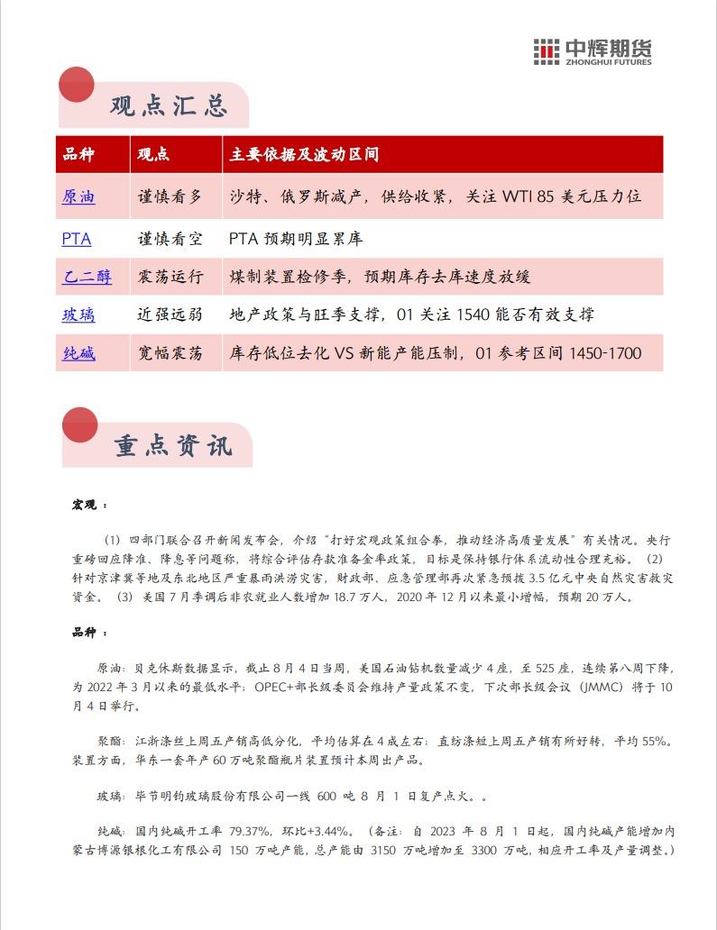 汇通财经APP讯——中辉期货发布能化板块早报,建议原油谨慎看多,PTA谨慎看空,预测乙二醇震荡运行,玻璃近强远弱,纯碱宽幅震荡。 中辉期货公司授权文本由“专注期货开户交易及专业行情分析资讯网站”:【一期货 www.1qh.cn】转发