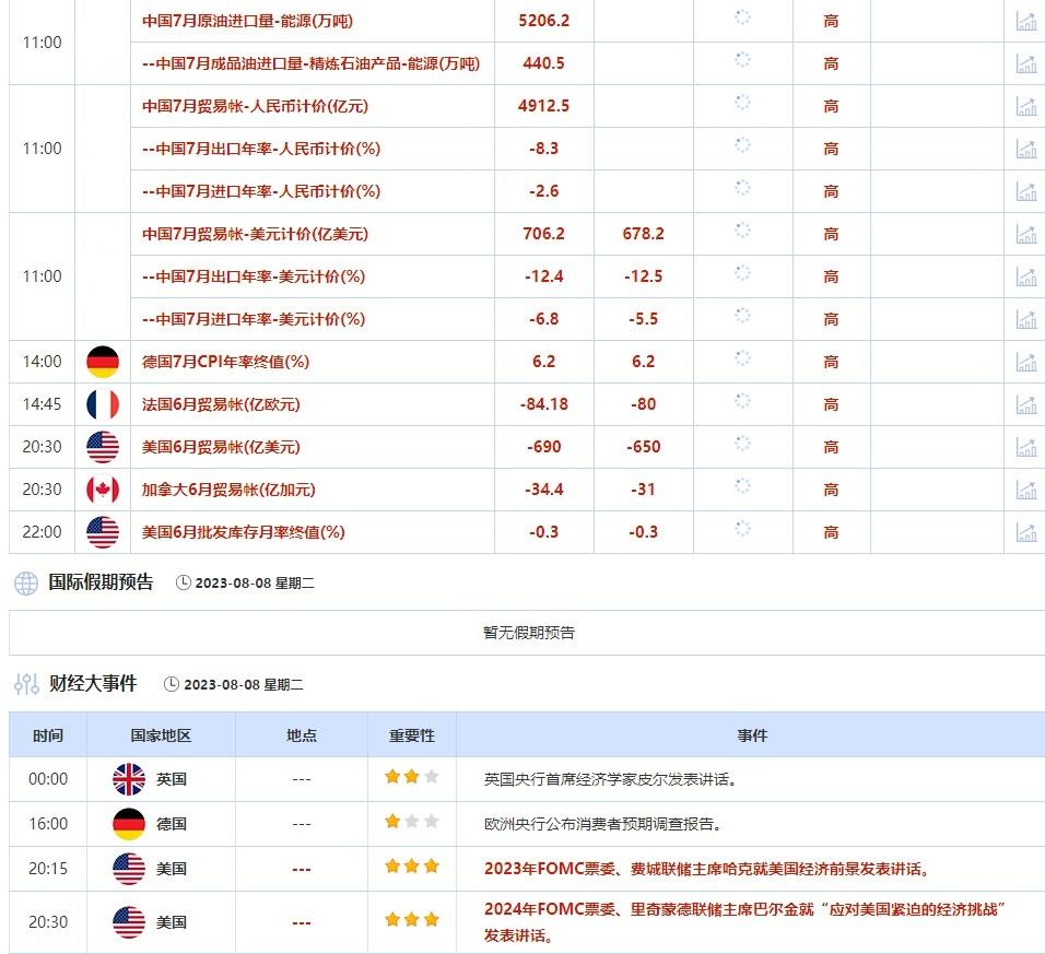 美元指数上周五曾触及一周最低,此前公布的美国非农就业报告弱于预期。周一美元指数收涨0.08%,报102.08。投资者也开始关注即将公布的美国通胀数据。周四公布的美国数据预计将显示,7月核心物价料同比上涨4.7%。