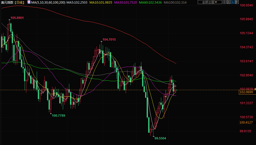 美元指数变化不大,报102.03,上周五曾触及一周最低,此前公布的美国非农就业报告弱于预期。
