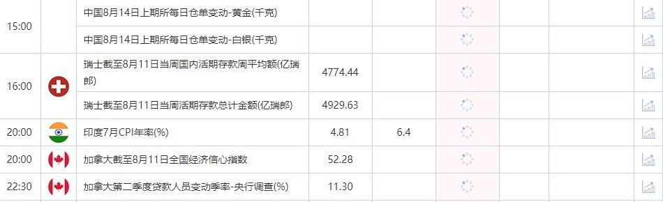 8月14日投资者需要关注的数据和大事不多。投资者需要关注加拿大截至8月11日全国经济信心指数,料变动不大。