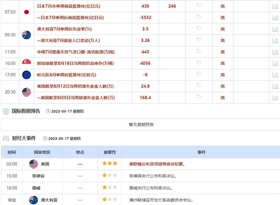 ④8月17日(周四)关键字:美国截至8月12日当周初请失业金人数,美联储7月货币政策会议纪要