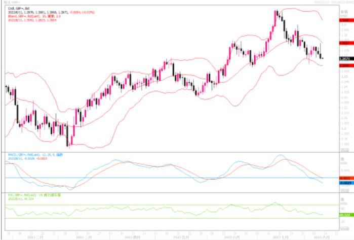周四(8月10日)英镑兑美元先扬后抑继续下跌0.36%,收盘于 1.2674。虽然市场关注的美国7月份CPI同比略低,但仍然远高于2%,证明美联储在抗通胀进程中尚未到放松时,因此隔夜外汇市场上,美元是先下挫后恢复上升,基本收复当日失地。而“英国宏观不利因素仍很严重”,英国皇家特许测量师学会(RICS)的数据显示,随着利率创下15年高位,上月英国房价出现2009年以来最普遍的下跌英国住房价格则进一步证明英国经济前景依然严峻。因此,市场上对于英国央行9月份加息的预期概率在逐渐降低。投资者目前更为关注的焦点似乎开始转到对于英国经济发展前景的看法上来。若是后续反映英国经济发展的数据显现不佳,则英镑必然承受较大的下行压力。日线图上,英镑/美元已跌穿了60日均线(1.2704附近)的支撑,技术指标继续明显下摆,显示英镑近期弱势下行趋向较为明显。进一步下行的初步目标将是1.26,该位置失守的话,下行空间将会加大。上方目前在1.2820附近构成较重的阻力。