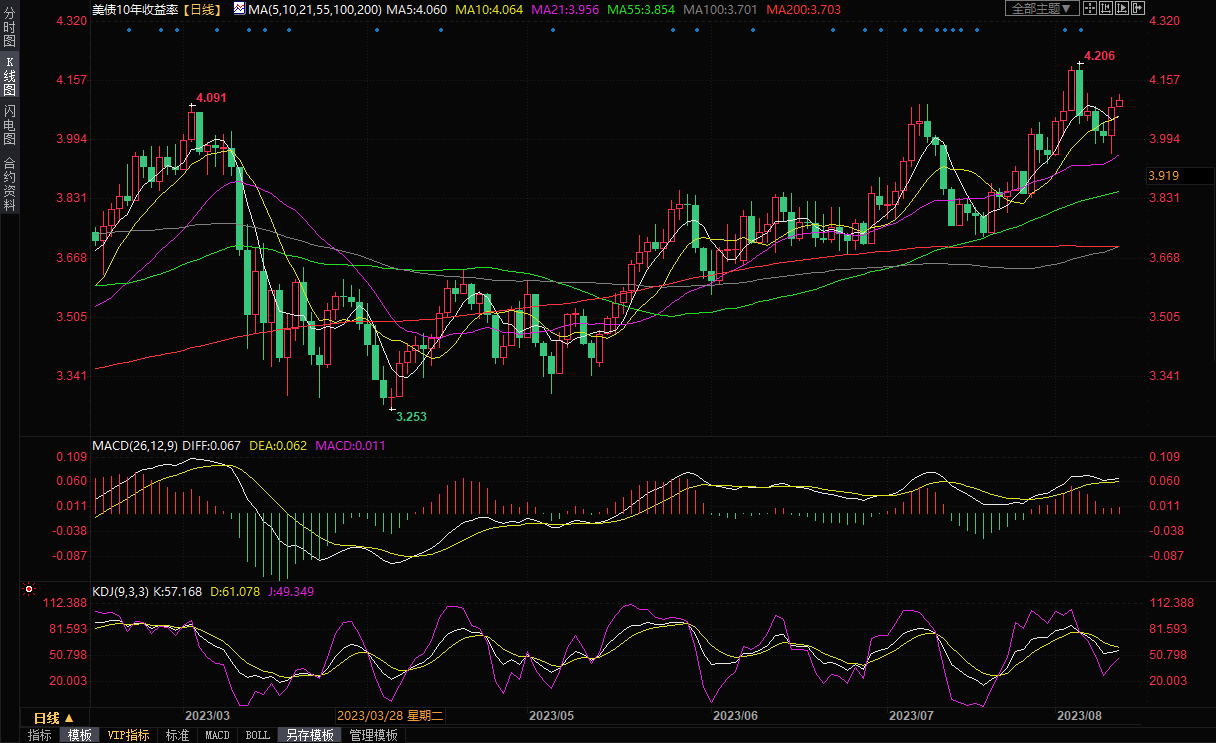 10年期国债收益率周四上涨8个基点,至4.082%。两年期国债周四上涨2个基点,至4.821%,已从7月6日创下的2007年6月以来最高5.120%下降。