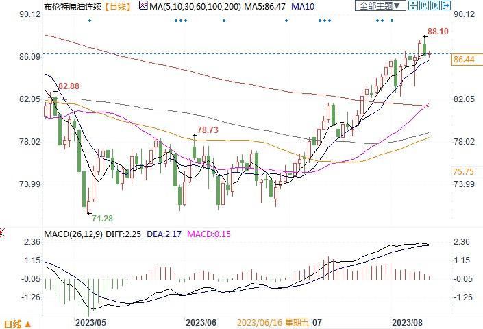 布伦特原油连续报86.53美元/桶
