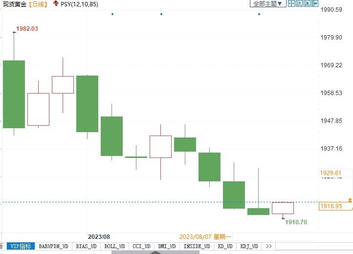 北京时间8月11日14:24,现货黄金报1916.80美元/盎司