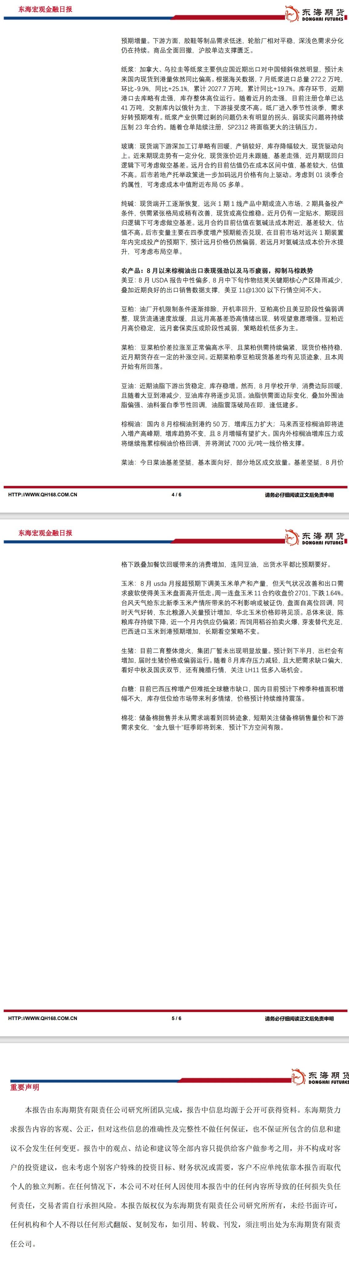 标题:【东海期货8月15日研究所晨会观点精萃】:美债收益率持续上升,美元继续反弹