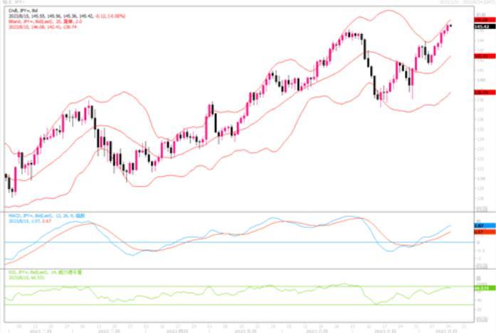 周一(8月14日)美元兑日元高收盘于11月以来最高的145.57水平,全日上涨0.42%。 在全球其他央行纷纷加息之际,日本央行仍坚持其超宽松货币政策,这使得其他国家的回报看起来更具吸引力,因此无论在直盘还是交叉盘交易中,均对日元造成了沉重的抛售压力。预料在套利交易的推动下,日元恐怕尚要继续承受下行的压力。但是需要警惕的是,去年9月,当美元兑日元升穿145时,日本对外汇市场进行了干预,日本财务省买入日元,将汇率推回到140左右。今年,日元兑美元已下跌了近10%。有机构分析提到:“如果我们在未来一两周内看到日本央行传出一些消息,我不会感到太惊讶。特别是如果日元开始向147移动,他们将有可能开始采取一些措施来提振日圆。”整体上,美元兑日元仍处在上升通道内,但需密切关注来自日本央行的任何反应,防范干预所带来的剧烈波动风险。
