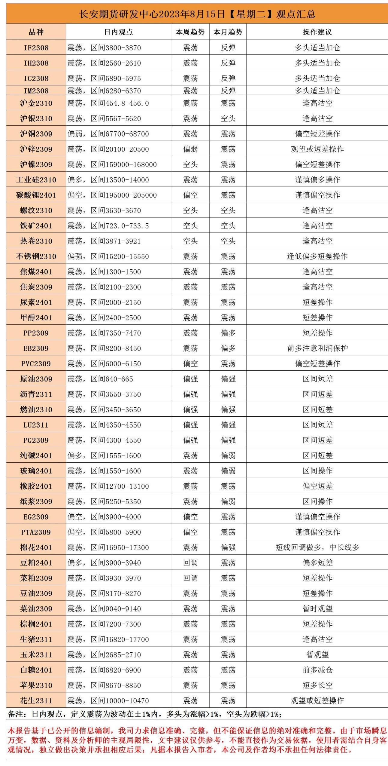 标题:长安期货8月15日早间看盘