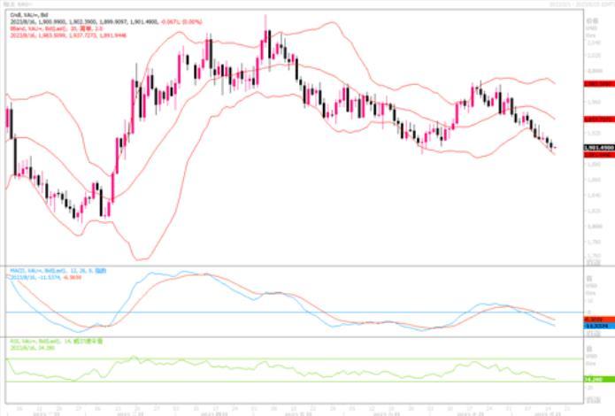技术层面上,日线级别图上,短期金价继续延续着下跌走势,整体报价区间走低加剧日线移动平均线向下交叉发散排列,维持阶段性偏空指引参考。但是须留意短期跌幅继续扩大,加剧了日线技术指标RSI阶段性超卖格形态的出现。目前黄金多头仍挣扎守护1900关口。若晚间美联储7月会议纪要偏鹰,则有可能继续打压黄金。相反的话,黄金则有机会进行超卖调整,在空头回补的带动下获得一定回升牵引力,但预计这种调整性的回升,幅度相当有限。上方1913-1925区域将构成初步的阻力。