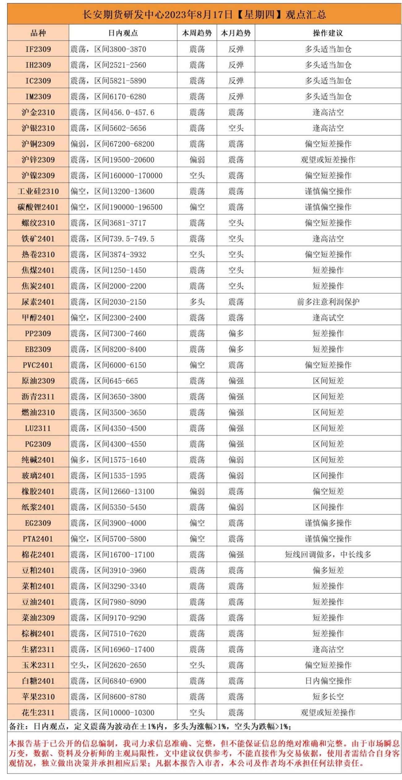 标题:长安期货8月17日早间看盘