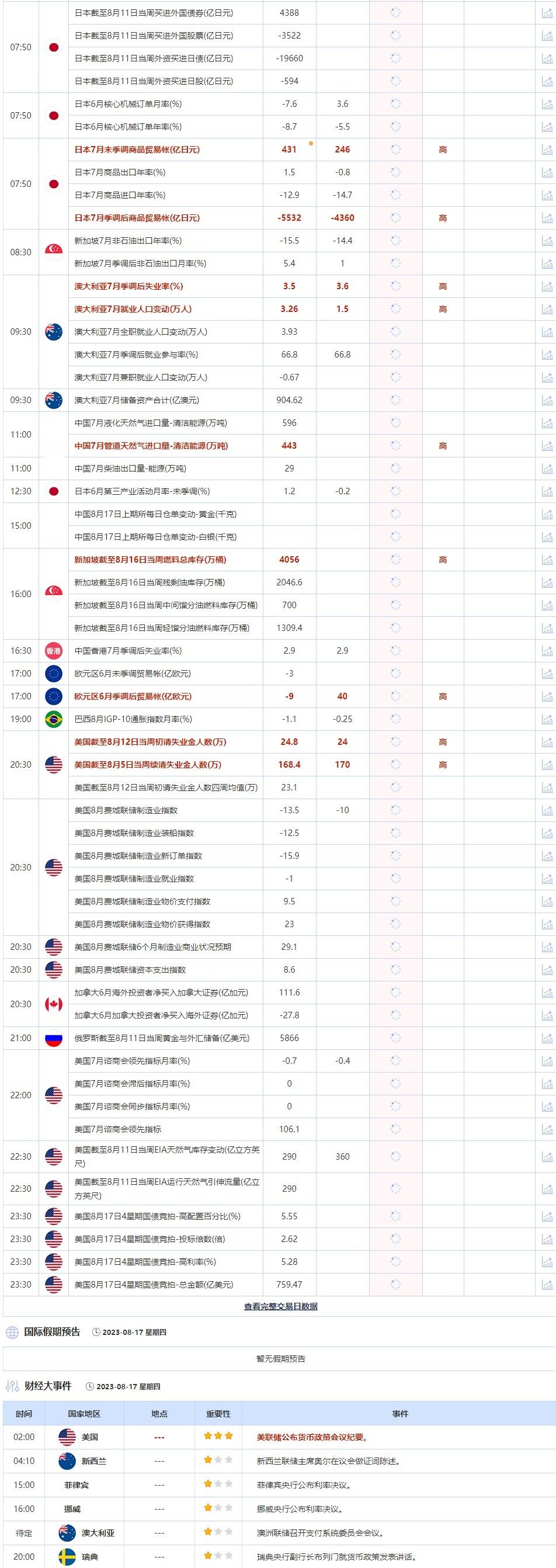 后续及时更新的财历数据请关注:【汇通财经8月17日财经日历】