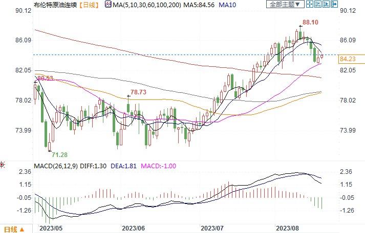 北京时间8月18日11:54,布伦特原油连续报84.18美元/桶
