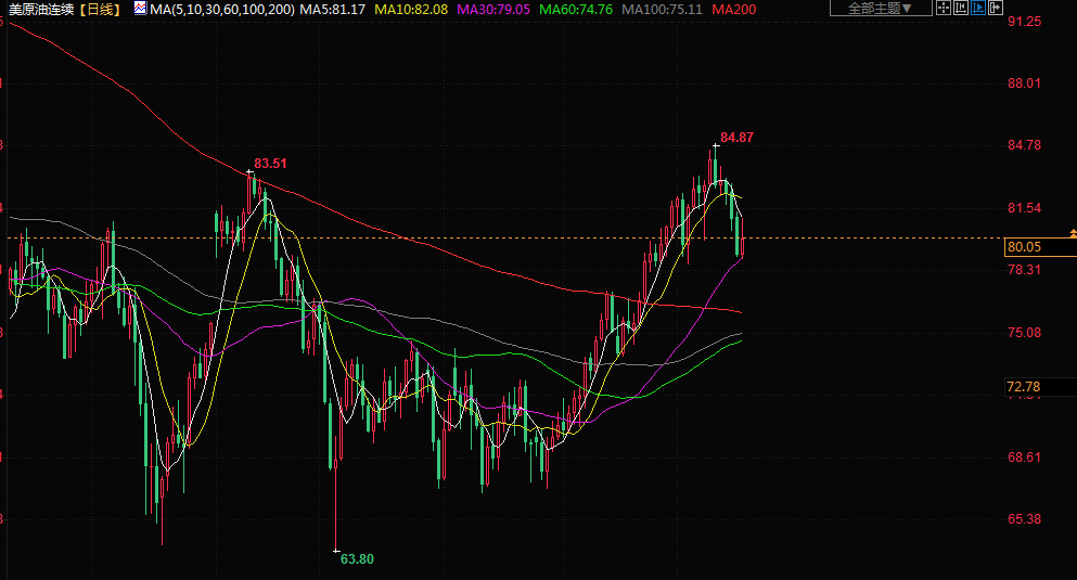 商品收盘情况:美国期金收低0.7%,结算价报1915.20美元。布伦特原油期货涨0.8%,报每桶84.12美元;美国原油涨1.3%,报每桶80.93美元。