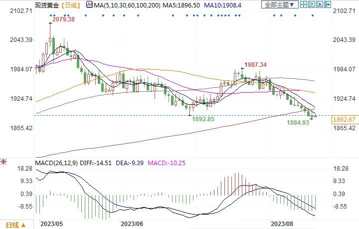 北京时间8月18日14:53,现货黄金报1892.67美元/盎司
