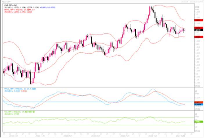 上周英国方面公布了一系列良好的数据:英国基本工资增幅创历史新高,在截至今年6月的季度中,英国剔除红利的平均工资年率录得7.8%,这是自2001年有可比纪录以来的最高年增长率,也高于此前一期上修后的数据7.5%及经济学家预期的7.4%。英国国家统计局上周发布的初步统计数据显示,2023年第二季度英国国内生产总值(GDP)环比增长0.2%,好于第一季度环比增长0.1%的表现,也高于预期。 数据提高了英央行9月份继续加息的押注。尽管如此,经济学家预测,英国经济今年在接下来的时间内将减速,并陷入衰退。尽管第二季度GDP有所回升,但值得注意的是,按照历史标准衡量,增长仍然不佳。未来前景也很疲弱,经济继续面临一些阻力,特别是货币政策收紧的影响。预计第三季度增长将放缓,接下来的两个季度将出现收缩。 经济学家给出的理由是,第二季度的经济增长,主要是额外假期、异常温暖的天气所致,因此使人们很难判断经济的真实健康状况。经济学家们仍然认为,由于利率上升的大部分拖累仍将到来,第三季度GDP将下降,温和的衰退将开始。短线来看,英镑/美元似乎有筑底回升迹象,目前上方初步阻力在1.2850,下方强支撑在1.26。继续观察将向哪一方突破。