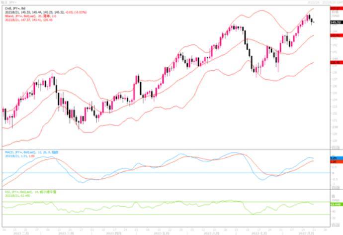 尽管上周数据显示,日本核心通胀有所降温,市场对日本央行年底前改变超宽松货币立场的预期稍有动摇。但美联储和日本央行的政策差异依然显著。这支持美元兑日元货币对维持上升势头。尽管美元兑日元当周升至九个月高点,但仍没有迹象表明日本当局很快会干预汇市以减缓日元再度下跌的势头。日本财务省在过去进行干预行动之前通常都会先发出激烈的口头警告,而最近却缺乏这样的警告,而且对近期日元再度疲软明显保持沉默,一定程度上助长了美元套利交易模式的延续。技术图形上,美元/日元在创下11各月以来的高峰(146.55)后,出现获利回吐技术性调整回落,现汇价交投于145.40附近。除获利回吐对汇价构成了一定的打压外,投资者对日本央行再次干预汇市的担忧一直保持着高度警惕,也是施压汇价回落的重要因素。日线图上各类技术指标有转向迹象,短线需继续留意获利调整的回落风险。若145初步支撑失守,进一步调节的下落水平望向143。
