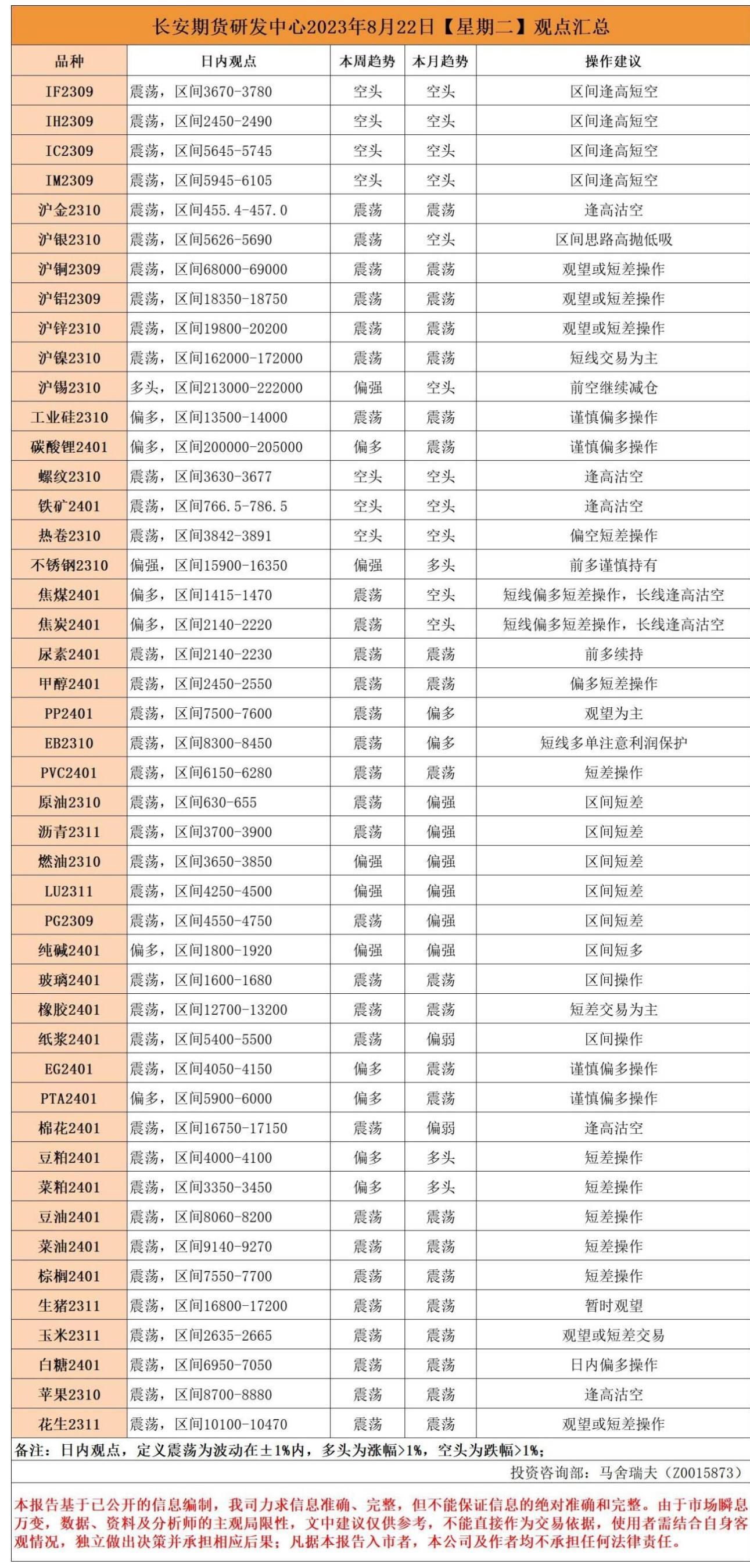 标题:长安期货8月22日早间看盘