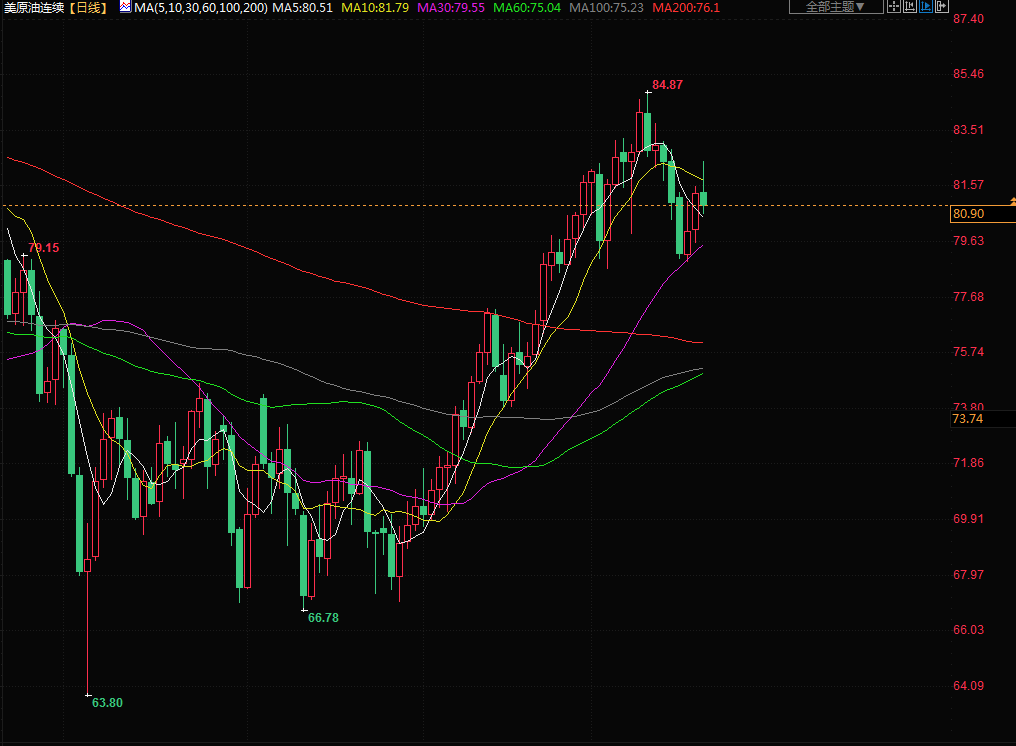 商品收盘情况:美国期金收高0.3%,结算价报每盎司1923.00美元。布伦特原油期收跌84.46美元,跌幅0.4%。美国原油期货收报每桶80.72美元,下跌0.65%。
