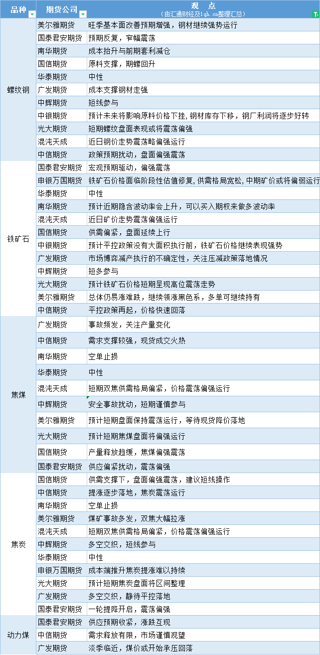 汇通财经APP讯——期货公司观点汇总一张图:8月23日黑色系(螺纹钢、焦煤、焦炭、铁矿石、动力煤等)