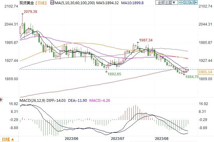 北京时间8月23日10:27,现货黄金报1901.02美元/盎司