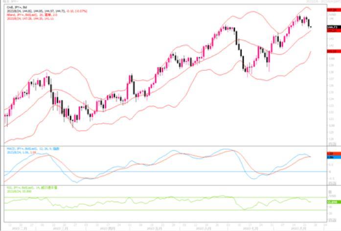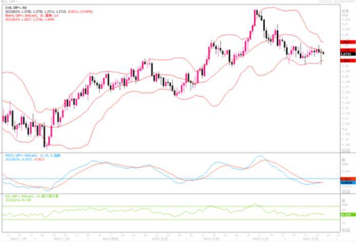 周三(8月23日),英镑兑美元下跌0.04%,收盘在1.2730。在欧洲交易时段,镑美一度跌至1.2632美元,为8月14日以来的最低水平,也是7月27日以来英镑兑美元的最大单日跌幅。主要是英国8月标普全球/CIPS综合采购经理人指数(PMI)初值从7月的50.8降至47.9,为2021年1月以来的最低水平。造业PMI从45.3降至42.5,为2020年5月以来最低;服务业PMI从51.5降至48.7,与1月份的两年低点持平。数据表明英国央行过去的一些加息措施开始发挥作用。为此,交易员缩减对英镑峰值利率的预期。随着经济放缓的证据增多,以及英镑利率峰值比预期有所降低的话,英镑后续的走势料将承压。日线图上,英镑/美元紧贴在布林带通道中轨线之下,其整体下行态势尚未有转变的迹象,虽然技术指标MACD信号线有底部粘连迹象,但尚不足以反映英镑有反转的势头。今昔继续留意1.2850和1.2600这两个点位,向任何一方突破,则会由明显趋向性走势显现。
