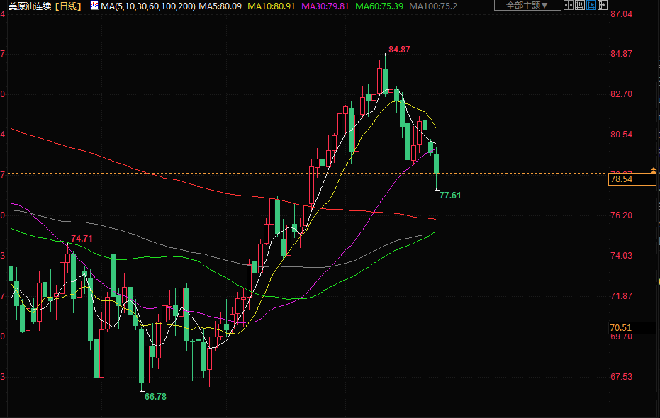 商品收盘情况:美国期金收高1.1%,报1948.10美元。布伦特原油期货下跌0.98%,报每桶83.21美元,盘初一度大跌2.5%。美国原油期货下跌0.9%,报78.89美元,盘中一度重挫3.4%。