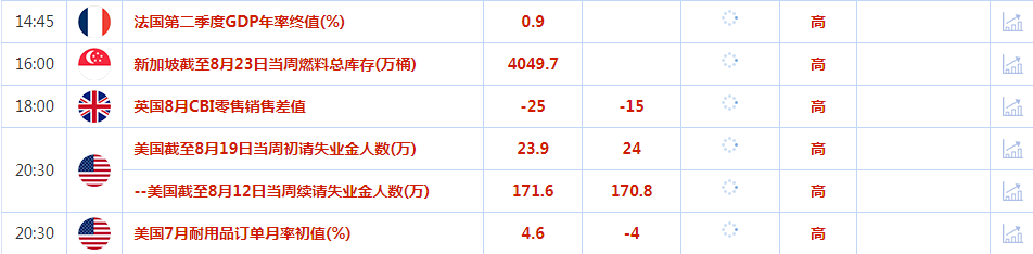 标题:8月24日财经早餐:数据显示美国经济活动接近停滞,金价连升三日接近两周高位