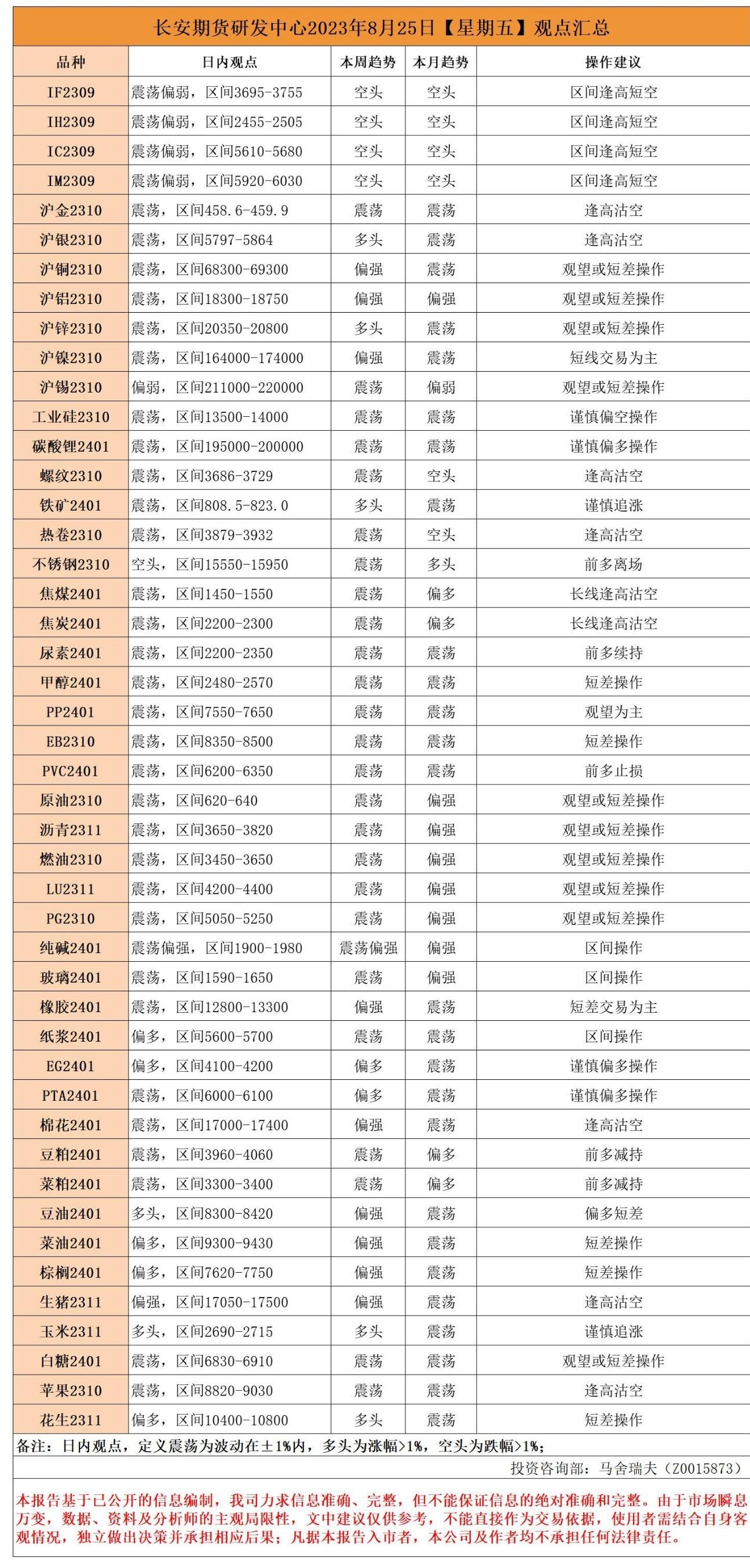 标题:长安期货8月25日早间看盘