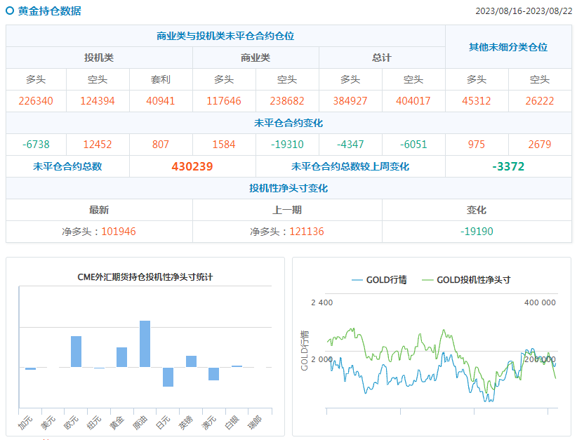 截至8月22日当周,日元净空头头寸为-95323手合约,欧元净多头头寸为158760手合约,英镑净多头头寸为59107手合约。