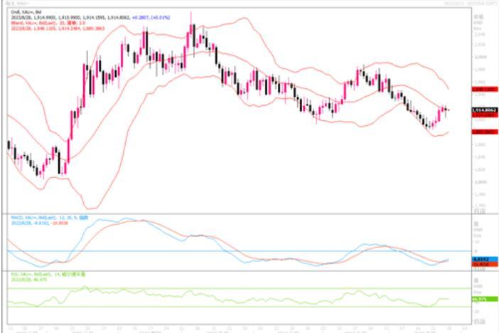 接下来一周美国将有大量重要经济数据公布,包括职位空缺、ADP就业和非农就业数据,这些数据将让市场深入了解美国就业形势。美国第二季GDP修正值,以及个人消费支出(PCE)物价指数和ISM制造业数据也将公布,这应该有助于投资者确认美联储可能的利率轨迹。从技术面来看,在日线图上,金价似乎最近完成从下行通道的向上突破。MACD指标似乎也即将呈现向上交叉,表明黄金市场当前情绪从看跌转为看涨。进一步反弹的话,黄金多头将寻求将反弹走势延伸向1945美元/盎司。另一方面,金价近期多个交易日的反弹都受限于布林带中轨,如果黄金难以突破布林带通道中轨线或近期的初步阻力1923水平的话,将削弱黄金的反弹动能,继而将继续陷入此前形成的下跌通道内。