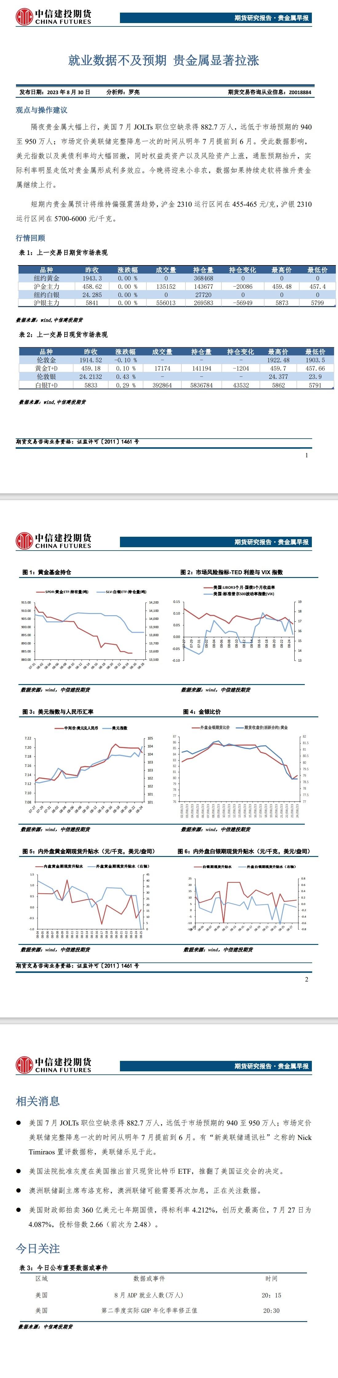 标题:中信建投期货8月30日贵金属日报:就业数据不及预期 贵金属显著拉涨