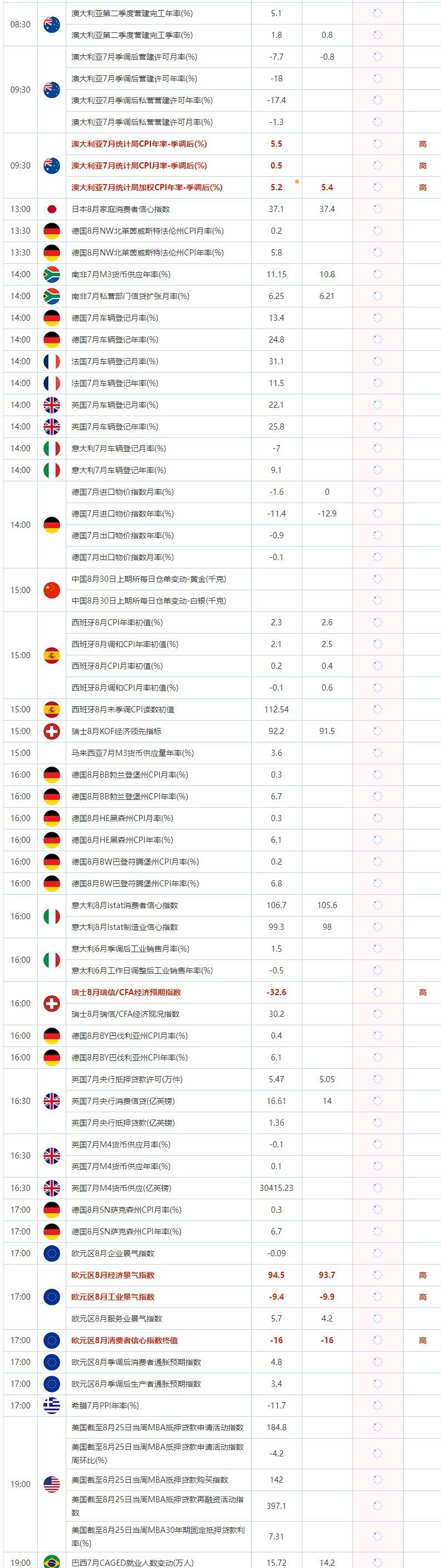 后续及时更新的财历数据请关注:【汇通财经8月30日财经日历】
