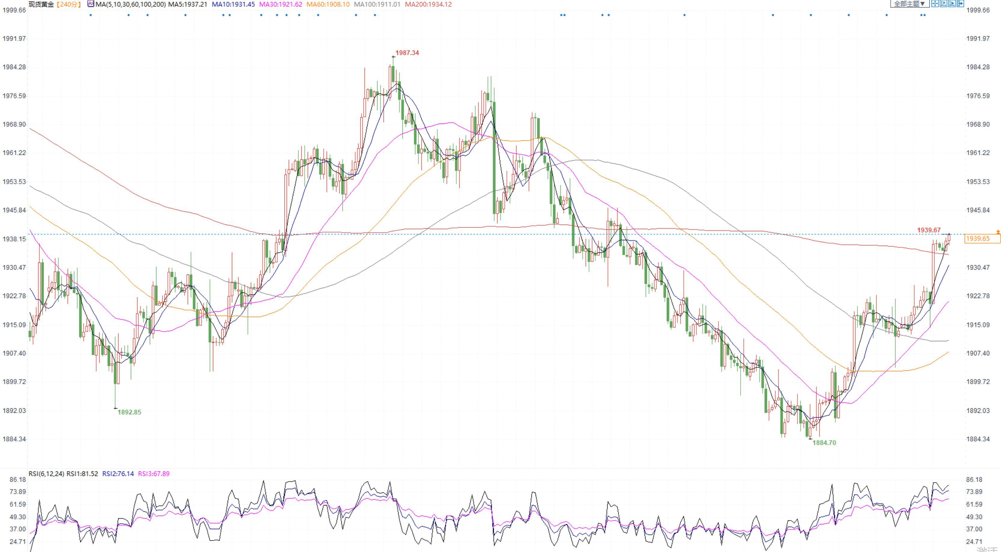 路透技术分析师王涛表示,鉴于已经突破1,936美元的阻力位,金价可能会续涨至每盎司1,948美元。