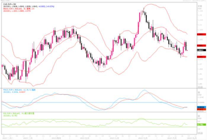 周四(8月31日),欧元兑美元尾盘下跌0.73%,报1.0843美元。周四的数据显示,欧元区通胀率在8月保持稳定,但核心通胀一如预期下降,这种喜忧参半的情况使欧洲央行的处境变得复杂,目前欧洲央行正在权衡在经济增长明显放缓的情况下暂停加息的利弊。周四当天欧洲央行最鹰派的管委会成员之一施纳贝尔表示,欧元区经济增长弱于预期,但这并不意味着无需进一步升息。从其讲话中看出,管委会中最有影响力的鹰派采取了更为谨慎的基调。他警告经济增长面临下行风险的事实给欧元带来了一些下行压力。而来周四自美国的数据显示,7月美国消费者支出环比增长0.8%,增幅为六个月来最大,个人消费支出(PCE)物价指数7月环比上涨0.2%,与6月的涨幅持平。数据表明美国经济仍然是半满状态。但考虑到本周早些时候就业方面疲软的数据让人怀疑美联储是否会再次加息。为此,周五将公布的8月就业报告将被广泛关注,以确定就业市场是否正在走弱。从而也影响着美联储年内余下时间内货币政策的走向。日线图上欧元兑美元再度回落到布林带中轨线之下,暂时还是未能摆脱下行的轨迹。日内须密切留意晚间美国非农的情况。