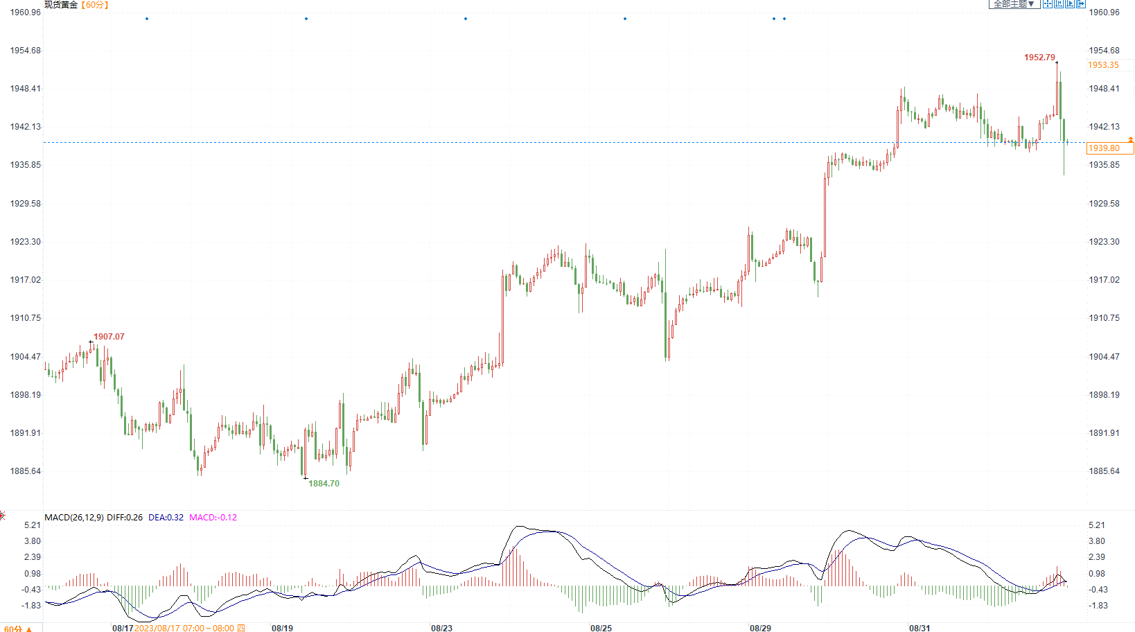 标题:黄金走出倒“V”行情,回落至1935下方