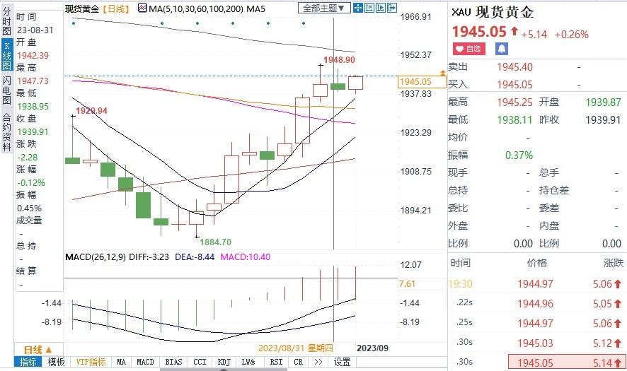 汇通财经APP讯——周五(9月1日)欧市盘中,现货黄金维持日内温和升幅,金价现报1944美元/盎司附近。目前黄金交易员聚焦美国非农就业报告,预计将引发黄金市场大行情。