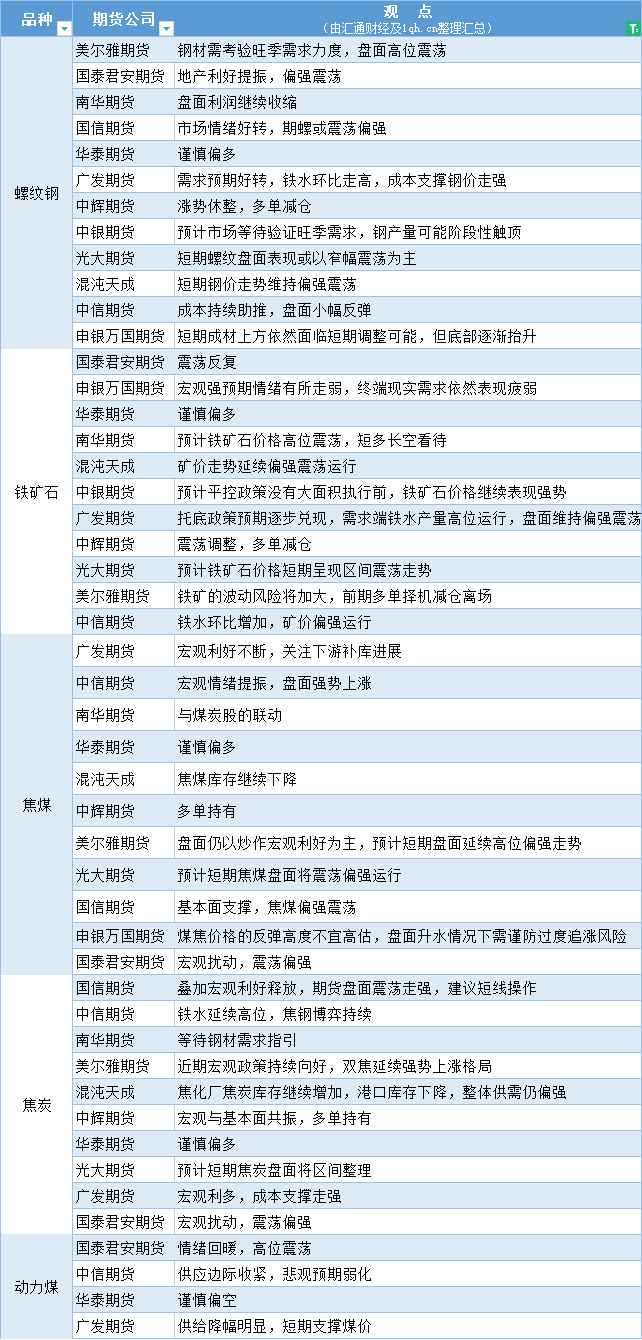 汇通财经APP讯——期货公司观点汇总一张图:9月5日黑色系(螺纹钢、焦煤、焦炭、铁矿石、动力煤等)