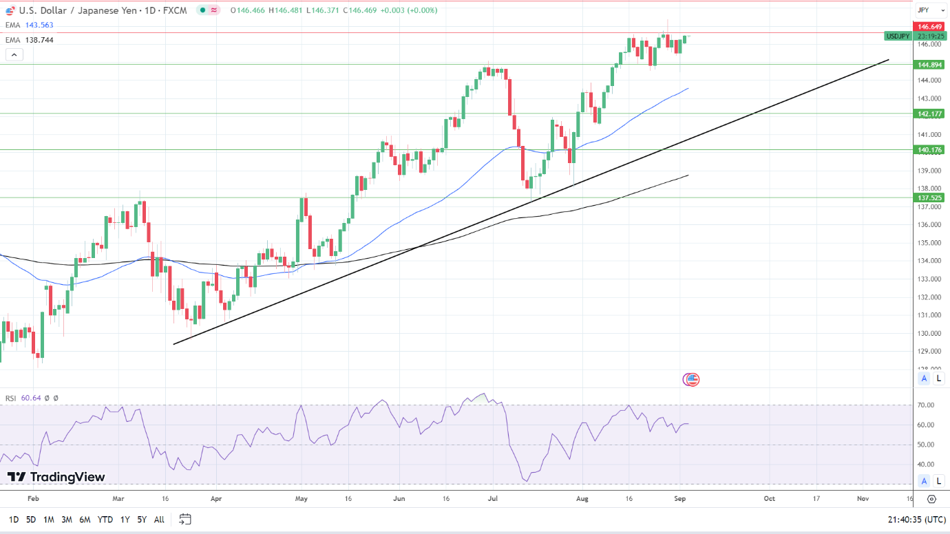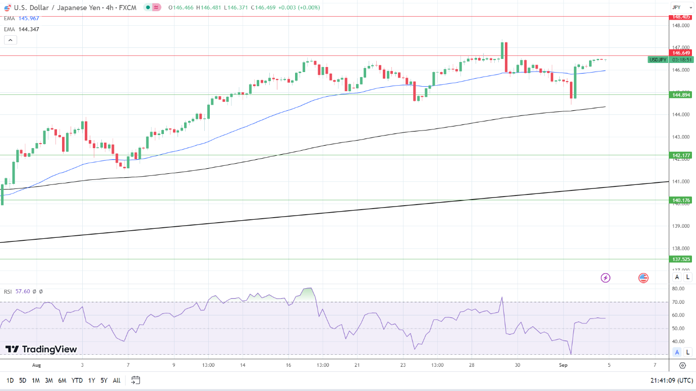 美元/日元仍高于50日均线,守住50日均线上方将支撑146.649阻力带和147点的运行。然而,日本家庭支出数据必须令人失望才能支撑突破。