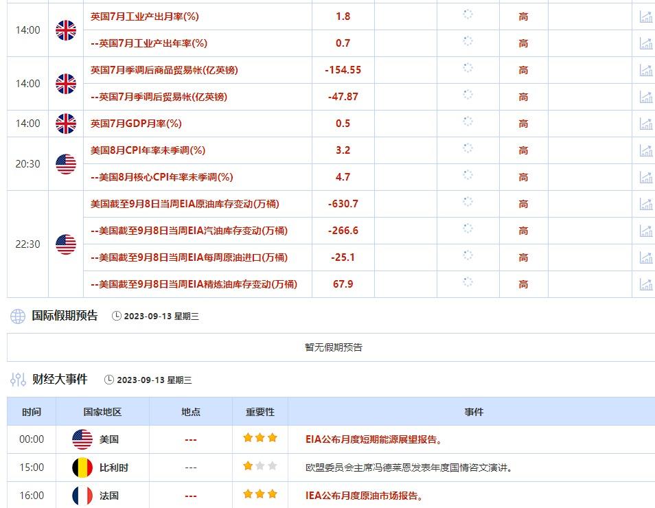 ③9月13日(周三)关键字:美国8月CPI,美国截至9月8日当周API和EIA原油库存变动