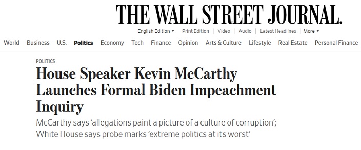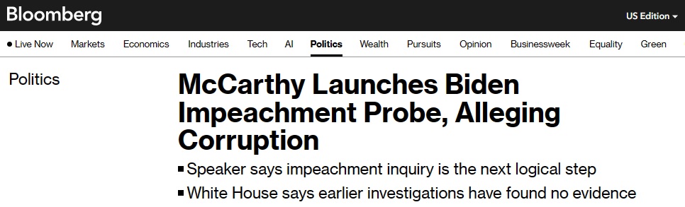 美国全国广播公司报道称,麦卡锡在9月12日新闻发布会上对记者称,对拜登的弹劾调查是共和党主导的持续数月调查的“顺理成章的下一步”。