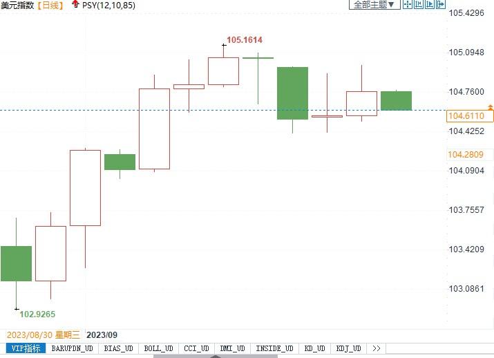北京时间9月14日12:05,美元指数报104.61