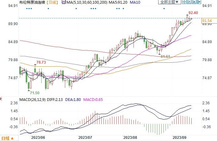 北京时间9月14日11:23 布伦特原油连续 报 91.54 美元/桶。