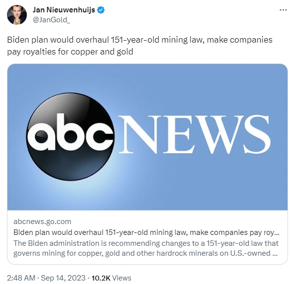 标题:涉及黄金、铜和多样大宗商品!拜登拟“彻底改革”已有151年历史的采矿法……