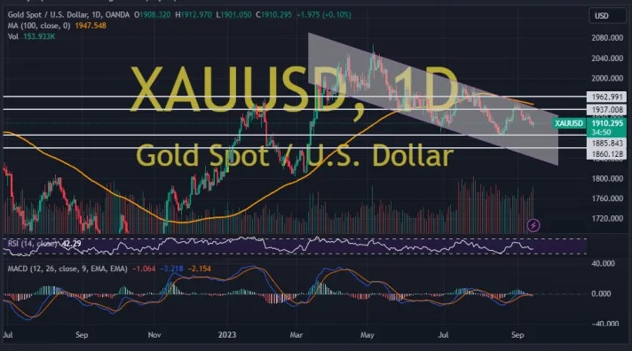 周五(9月15日)亚市盘中,现货黄金短线强势反弹,金价目前位于1916美元/盎司附近;亚市早盘,金价一度跌破1910美元/盎司。知名财经网站FXDailyReport分析师Nicholas Kitonyi最新撰文,对黄金后市走势进行分析。