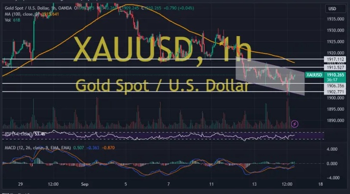Kitonyi在文章中写道,金价周四从约1900美元/盎司的趋势线支撑位反弹至1910美元/盎司左右。在60分钟的图表中,金价似乎在下行通道内交易。