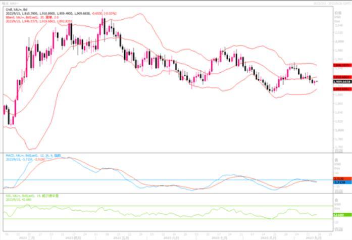 技术层面上,黄金昨日加速破位新低后没有延续,而是重新回到1910附近,说明低位有较多的承接盘支撑。目前4小时图上,各类技术指标有显示反弹修复跌势的味道。反弹第一压力就是1915位置,突破则有助于舒缓近期的跌势。若继续向上修复,则面临的阻力位置分别是1920和1930。而1900整数关口下破的话,则8月份低点1884附近将会经受考验。
